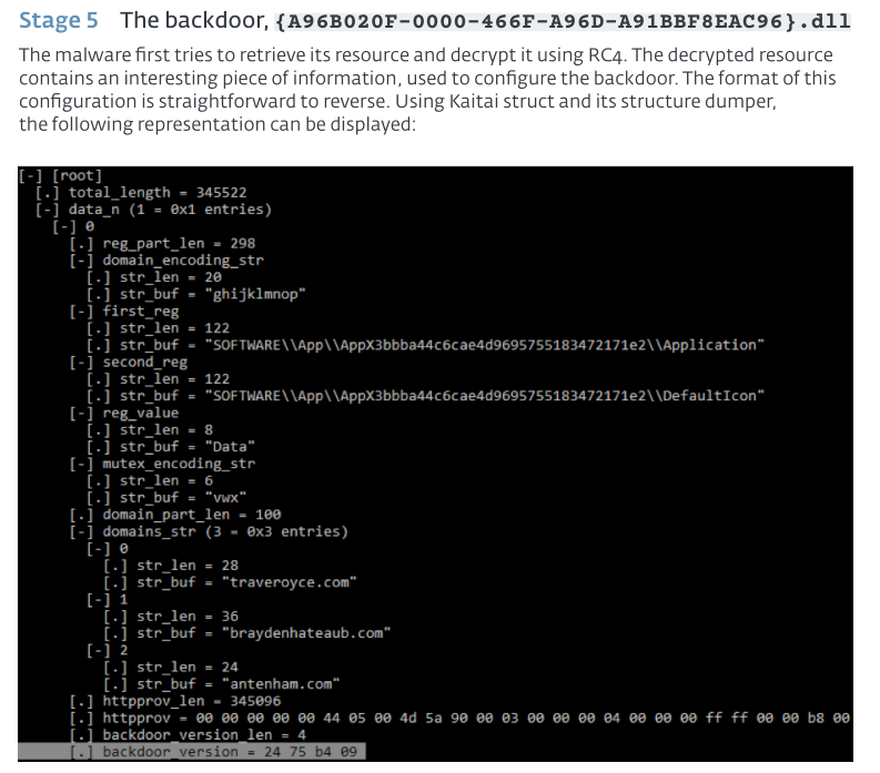 显然,此行为实际为{A96B020F-0000-466F-A96D-A91BBF8EAC96}.dll所进行的操作,其使用的是同一种加密方式。同时也可以确认,该域名才是此次海莲花攻击过程中的真实C&C服务器,用于进行后续的命令控制。