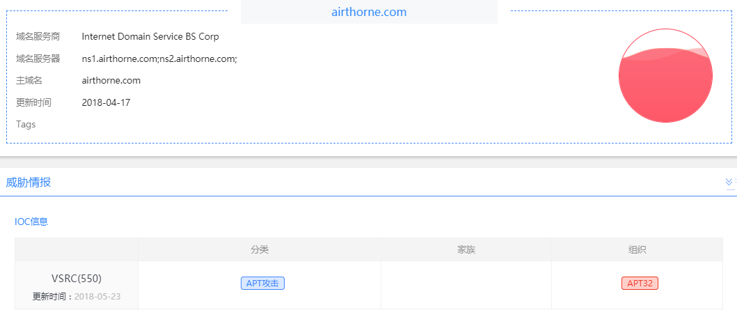 ● 通过VenusEye威胁情报中心可以查到与此次行动相关的IOC信息,可以看到该IOC已经被情报中心标识为APT32(海莲花)