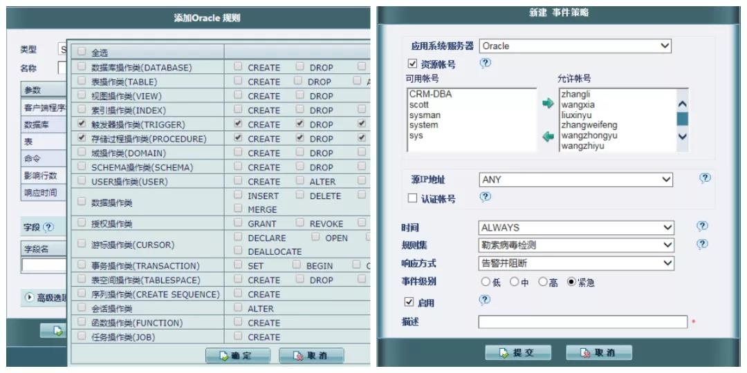 2、勒索病毒精准控制:恶意存储过程、触发器创建行为限制。