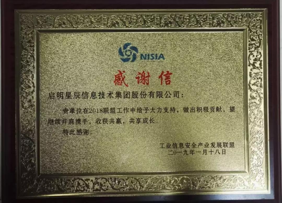 启明星辰集团获评工业信息安全产业发展联盟优秀成员单位