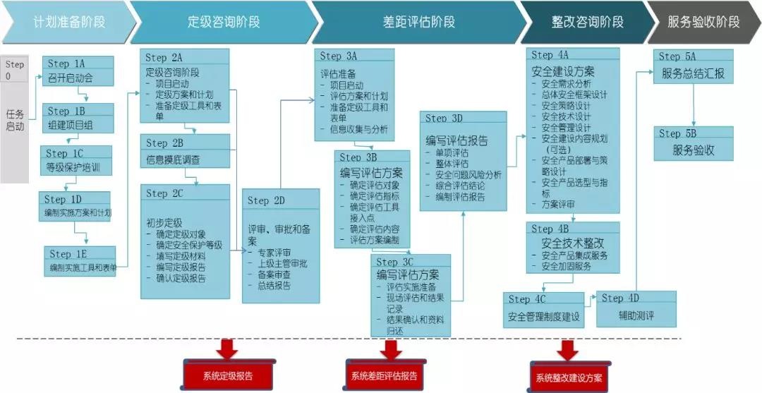 启明星辰等保2.0合规性咨询服务产品是依据国家网络安全等级保护2.0相关标准,结合客户系统安全保护等级,将等级保护实施流程划分为5个阶段:计划准备阶段、定级咨询阶段、差距评估阶段、整改咨询阶段、服务验收阶段,并为客户提供定级咨询、差距评估、整改咨询等服务,帮助客户提升网络安全保护能力。