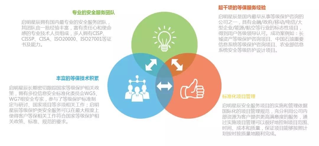 专业:拥有超千项的等保服务实施经验和技术积累、辐射全国近500人的专业服务支撑团队和标准化的项目管理流程。