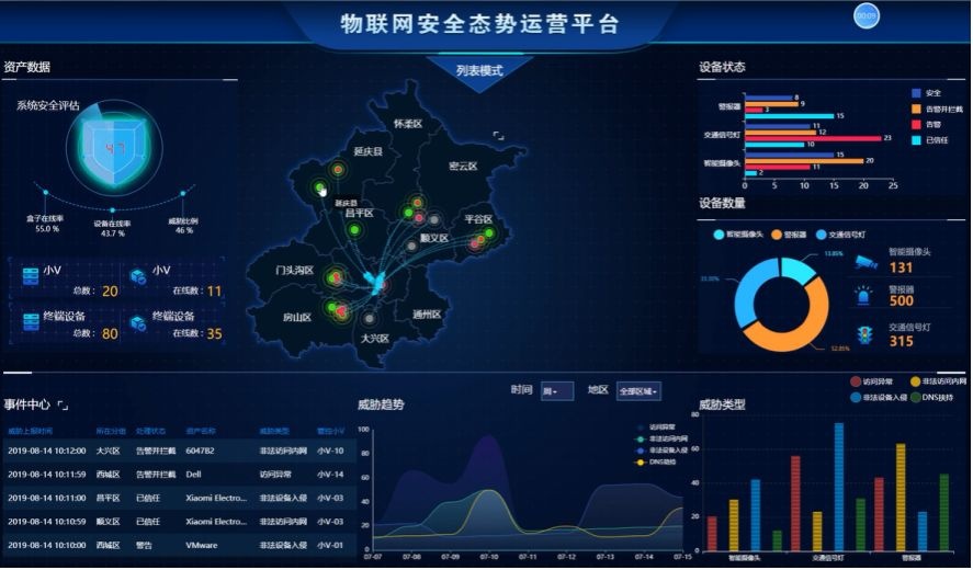 启明星辰物联网安全运营平台率先采用机器学习、人工智能、区块链等新兴技术,建设“AIOT”的业务模式,具备对物联网设备进行全面的统一监控、安全监测,及时发现、及时响应、预防风险、减少隐患等运营能力,通过在全球部署“蜜罐”收集的攻击内容提供各维度特征信息,形成针对性的安全威胁态势展现,以大数据分析为基础,提供决策依据,保障物联网业务的安全有效运行,满足国家相关法律法规,提升产业质效。