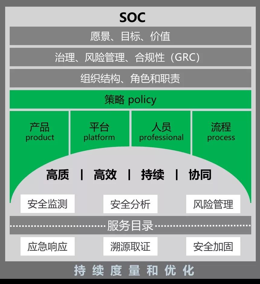 安全运营是以甲方为视角,目标为提高业务安全值的一系列连续的,协作的安全具体工作,它关注过程,更注重结果。