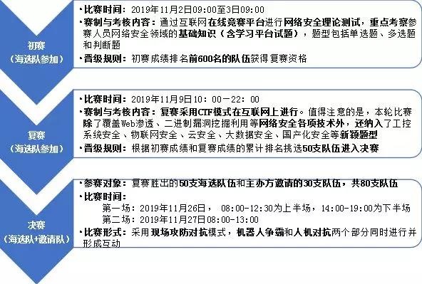 邀请队:由赛事组委会向国内网络安全领域知名的企事业单位、高校、研究机构等发出邀请函,邀请30支从事网络安全专业的精英队伍代表所属单位直接进入决赛,与海选队前50支优胜队伍同场角逐。