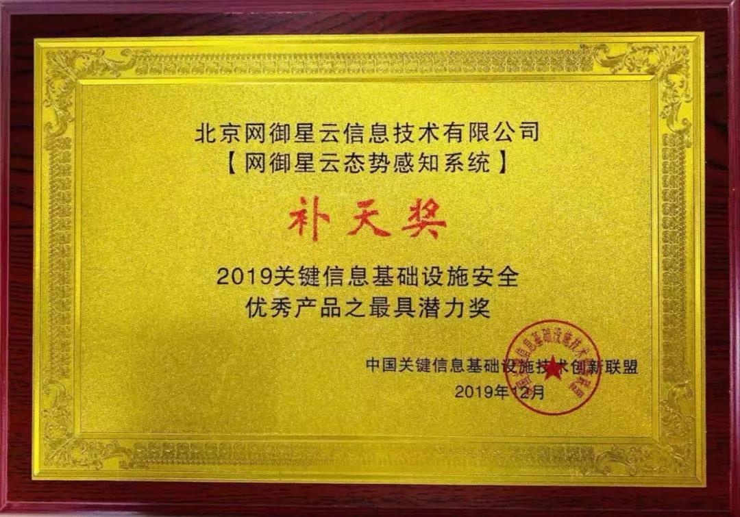 荣获优秀产品之最具潜力奖——“补天奖”