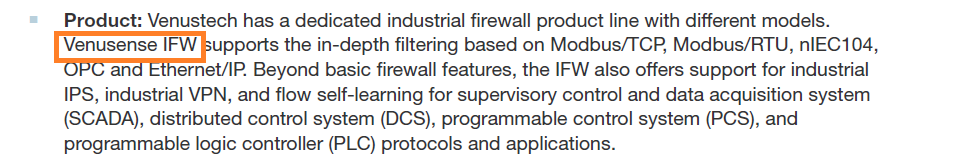 Gartner关于启明星辰工业防火墙(Venusense IFW)报告部分引述