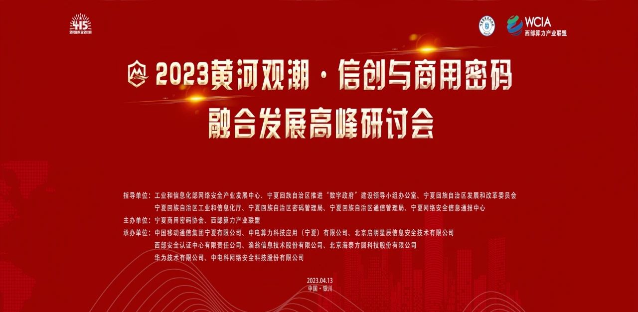 发布时间 2023-04-14近日,首届2023黄河观潮·信创与商用密码融合发展高峰研讨会在宁夏顺利召开,此次大会由宁夏商用密码协会、西部算力产业联盟主办,中国移动通信集团宁夏有限公司、启明星辰等公司承办,旨在加速布局宁夏信创与商用密码产业融合发展,切实维护国家网络安全及信息安全,推动数字宁夏健康发展。