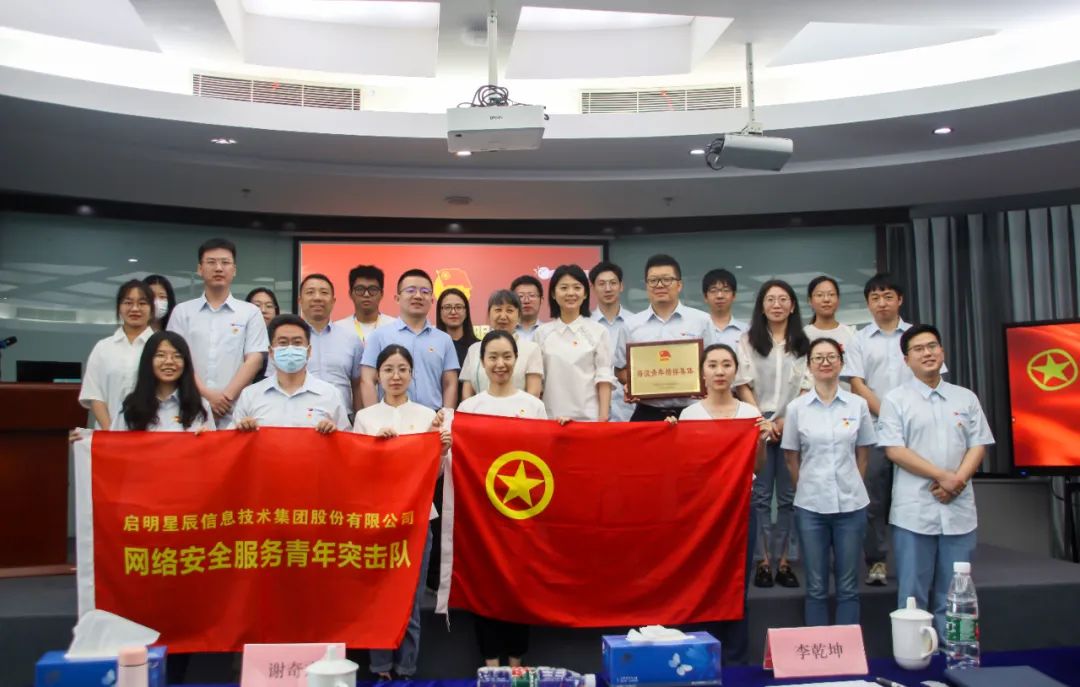 2023 年国家重大网络安全保障工作即将启动,启明星辰战略安全服务中心在集团党委的指导下,积极响应集团团委号召,在北京市青年文明号、海淀青年榜样集体的基础上,成立了启明星辰网络安全服务青年突击队。为此,共青团北京市海淀区委员会副书记刘亚为启明星辰网络安全服务青年突击队进行了授旗。