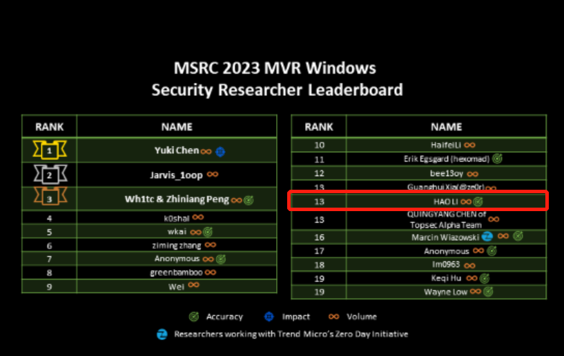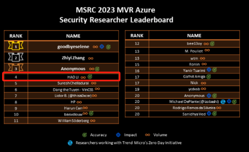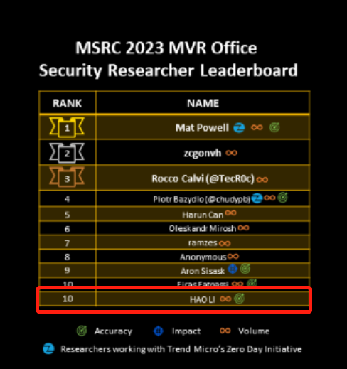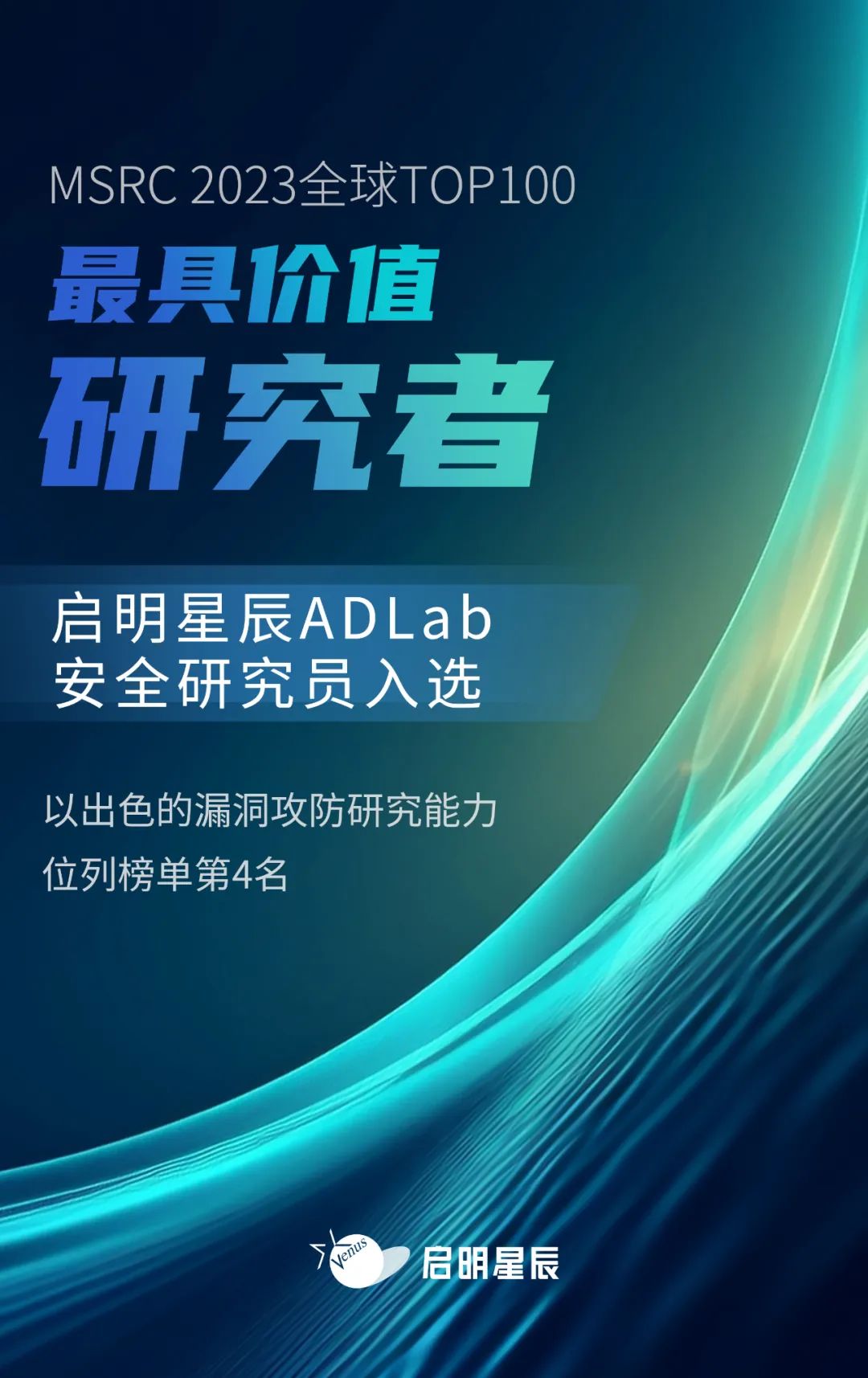 启明星辰安全研究员成功入选“MSRC 2023全球Top100最具价值研究者”榜单