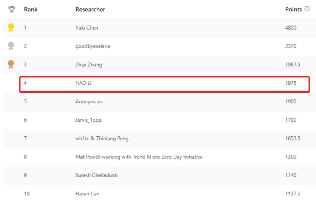 微软“MSRC全球Top100最具价值研究者”榜单是网络安全领域极具影响力的权威排名之一,旨在表彰为保护微软客户及更大生态系统安全而做出杰出贡献的全球安全专家。自该榜单开设以来,启明星辰ADLab多名成员多次入选,其在网络安全领域所做出的杰出贡献获得充分认可。