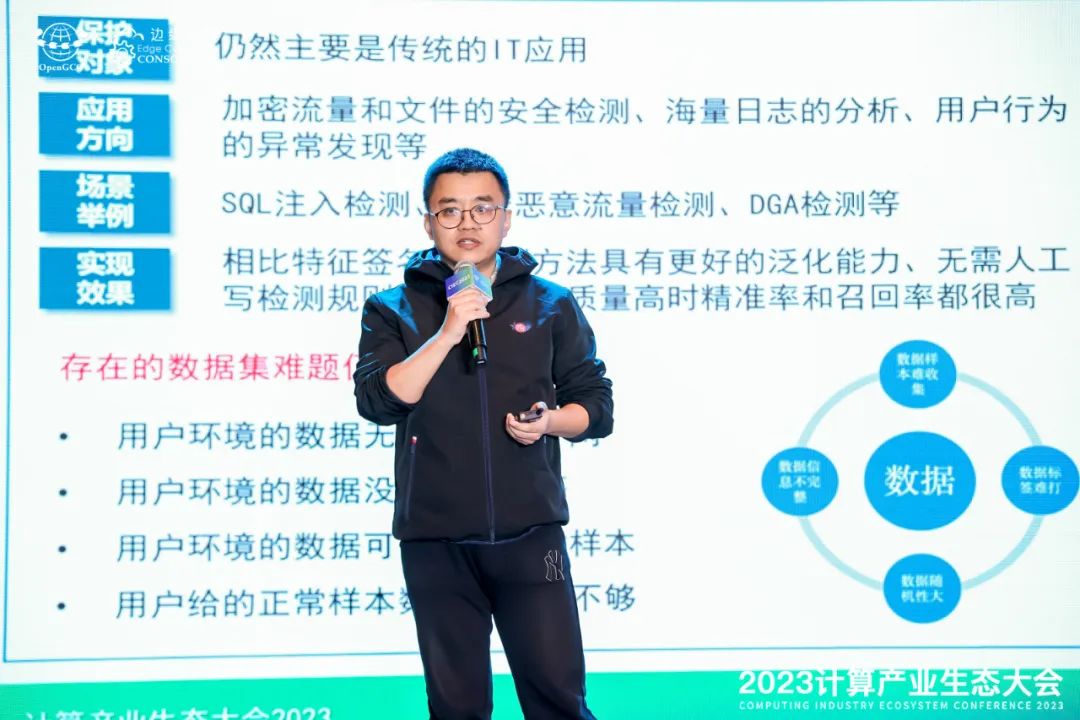 发布时间 2023-12-1512月14日,2023计算产业生态大会(CIEC 2023)计算安全分论坛在北京成功举办。启明星辰北冥AI实验室负责人李陟发表《人工智能安全大模型的应用架构与方案》主题演讲,围绕人工智能与网络安全之间的关系,以及安全大模型解决方案技术路线、场景应用等进行分享。