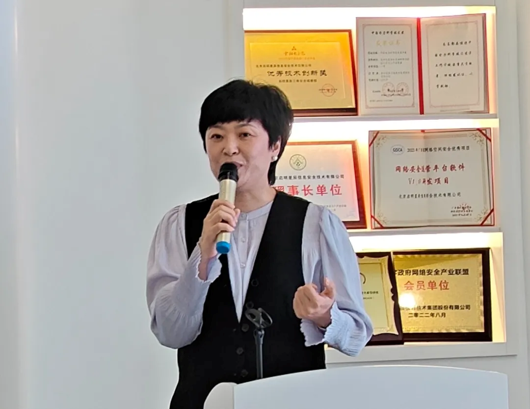 启明星辰集团合伙人/广东分公司总经理华丽娜全面介绍了启明星辰雄厚的安全能力和公司在广东区域的布局与发展,并表示2024年启明星辰广东区域将重点配合广东移动网信安全业绩指标达成,通过设立中移广东支撑中心,覆盖广东各个地市,从能力建设、区域合作和TOP客户三大方面出发,开放市场、共享机遇,支撑广东移动网络安全能力体系建设、落实安全领域战略性任务。