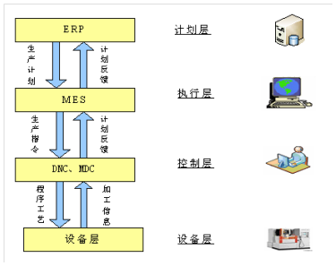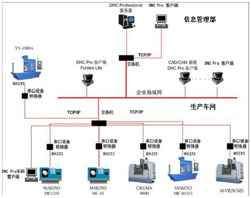 先进制造工控系统中大量使用数控机床,一般有铣床、磨床、洗床、加工中心等,主体品牌有西门子、法兰克、马扎克等国外品牌,以及海天龙门、永进等国内品牌。通常设备接口有RS232、RJ45两种。工控网络的生产与管理网的管理关系如下图所示: