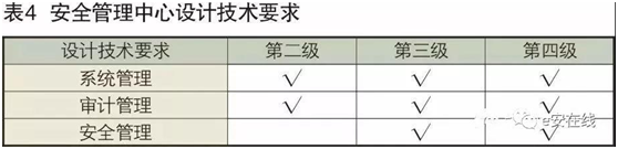 安全管理中心指对定级系统的安全策略及安全计算环境、安全区域边界和安全通信网络上的安全机制实施统一管理的平台。第二级及第二级以上的定级系统安全保护环境需要设置安全管理中心,称为第二级安全管理中心、第三级安全管理中心和第四级安全管理中心。安全管理中心设计技术要求逐级增强,各级要求如表4。
