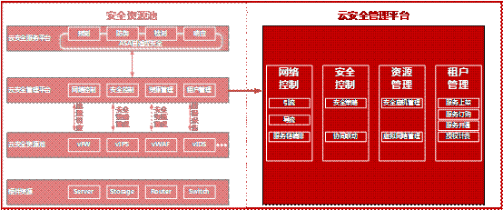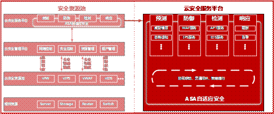 云安全服务平台借助云安全资源池的基础安全能力,以及云安全管理平台的管理控制能力,向最终用户提供自适应安全服务。