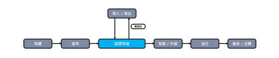 Rainbond企业应用市场与传统意义上的镜像仓库不同之处在于,它基于镜像仓库、包仓库和对象存储等存储系统支持,通过“以应用为核心”的抽象包装,简化使用。同时定义了支持大型、分布式企业应用模型,并针对企业应用模型提供持续构建、一键发布、在线安装、不间断升级、离线导入/导出、运行等全流程的管理。处于运行态的业务系统的多个组件运行状态可以进行全量备份,既可以在异常情况下进行恢复,也可以进行跨云迁移。企业应用市场对内可作为模块复用,应用共享的管理平台,对外可作为企业软件服务的交付平台,同时支撑标准化交付和个性化交付。