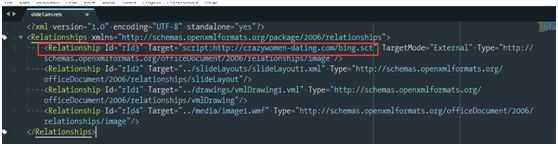 4.该ppsx文档利用了CVE-2017-0199的漏洞,自动播放ppt后即可触发,并下载运行一个sct脚本。