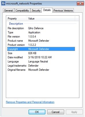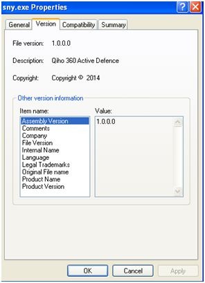 1.释放的木马版本信息伪造成微软或Qiho 360等。