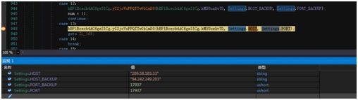 取出“[[”和“]]”中间的Base64字符串,经过两次base64解码和数次解密后得到样本需要连接的C&C地址。