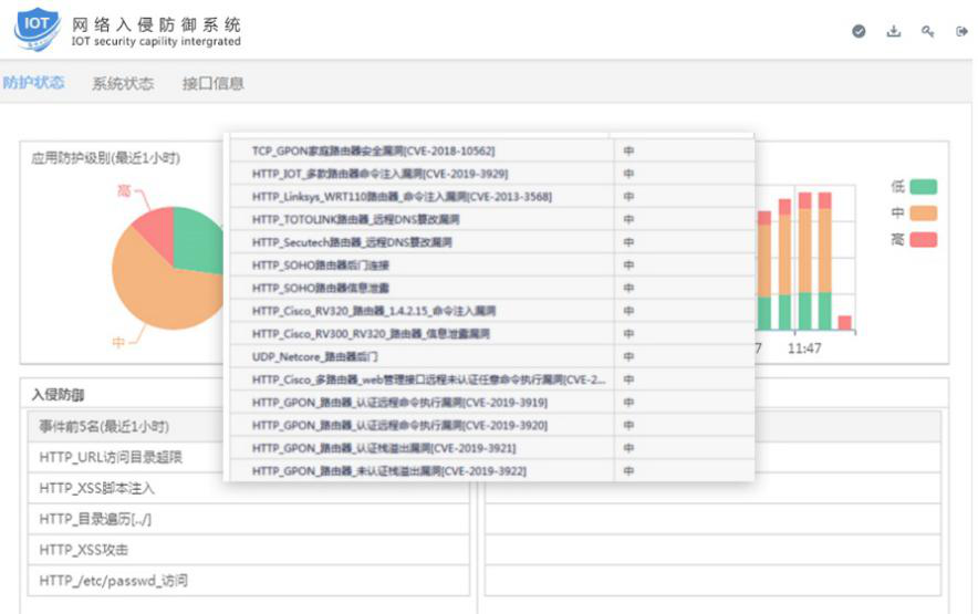 基于对视频网和物联网的资产感知和IoT安全逐年研究与探索,启明星辰入侵防御类产品已初步集成基于IoT安全的专有安全事件集,包括物联网设备的弱口令、越权访问、安全漏洞、缓冲区溢出、注入攻击、拒绝服务、僵尸网络、远程代码执行及应用服务漏洞等,积极应对物联网资产感知和安全防护需求。