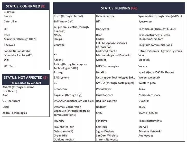 虽然,Treck已经发布了补丁,供OEM使用最新的Treck堆栈版本(6.0.1.67或更高版本)。而JSOF分析师称:“尽管最好的方法是安装原始的Treck补丁,但在许多情况下无法安装原始补丁”。