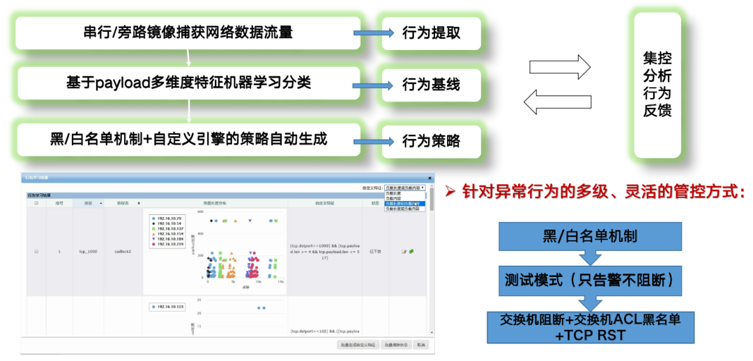 而启明星辰集团IoT-VBox针对短时间无法升级的物联网设备,可提供立体的防护能力。在资产维度,可以对受影响的资产临时进行审批隔离;在网络维度,IoT-VBox可以自动学习物联网资产连接关系形成基线,生成按需通断规则,减少攻击平面;在行为维度,IoT-VBox可以自动学习物联网资产的行为,形成行为基线,并同时加入基于Ripple20的异常行为自定义匹配引擎,一旦出现攻击,可以立刻报警阻断。
