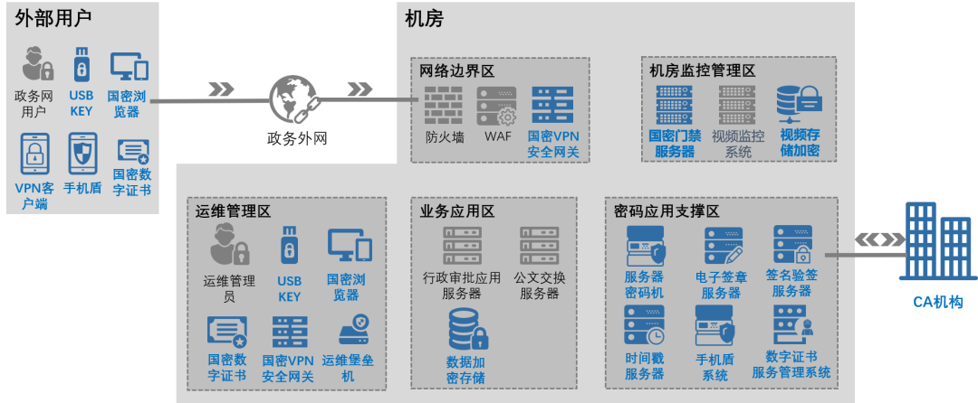 《规划》要求构建卫生健康行业网络可信体系,建设一批医疗卫生机构商用密码应用示范,全面推广商用密码应用,完善卫生健康行业商用密码应用体系。启明星辰商用密码应用方案根据GB/T 39786-2021《信息安全技术 信息系统密码应用基本要求》,从物理和环境安全、网络和通信安全、设备和计算安全、应用和数据安全、安全管理等5个层面进行商用密码应用方面的风险分析,通过可信身份的安全接入、远程传输加密、数据的机密性完整性保护等技术手段实现用户业务安全保障能力的提升。