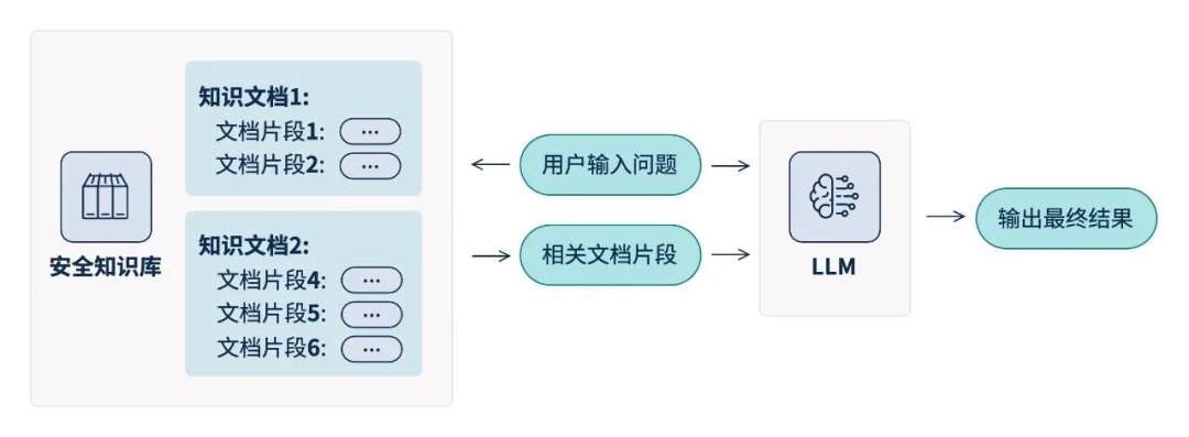 此外,将这些技术区分为“注入知识”和“注入应用知识的方式”两种。注入知识(上半图)主要目的是让大模型获得安全领域知识,能够在回答时有理有据而不是凭空捏造;而注入应用知识的方式(下半图)主要目的是教会大模型应用知识,希望大模型的回答能够依循特定格式或特定思路。