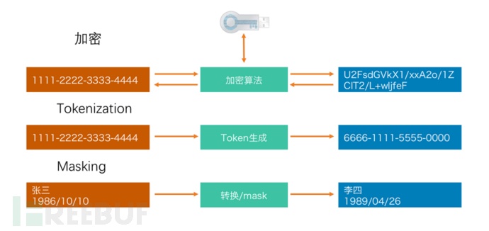 要对狭义的数据安全进行保护,有几个基本的工具可选,分别是令牌化(tokenization)、屏蔽(masking)和加密(encryption)。也还有一些其他手段,但成熟性不够,短期内还不能大规模工程化。