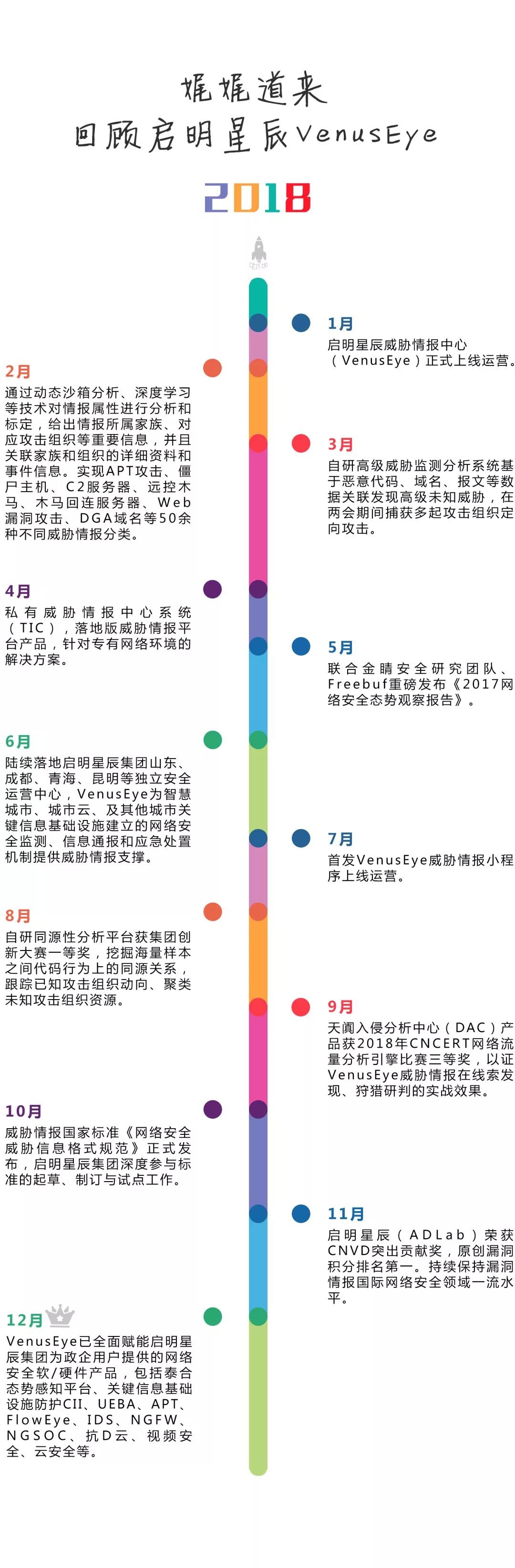 一路走来,启明星辰威胁情报中心(VenusEye)在该领域深耕细作,潜修践行,在威胁情报研究、监测、收集、生产、加工、应用等能力上不断突破,同时积极参与威胁情报国家标准及行业政策的制定和相关工作的推进,是国内为数不多的“领航者”之一。