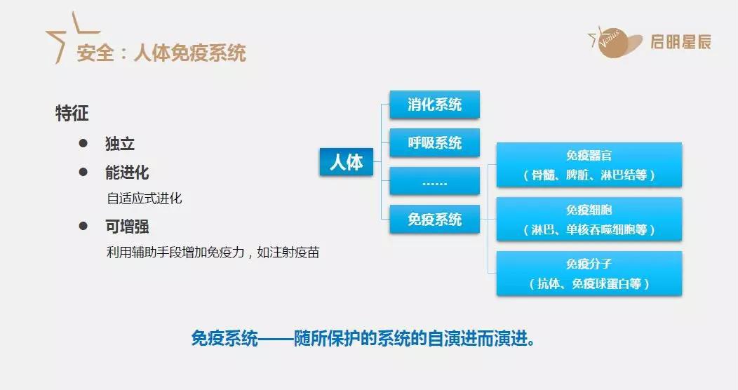 免疫系统有三大特点:独立、能进化、可增强。这与我们大数据时代需要的以数据为中心的独立自演进的安全防护体系是非常相似的。